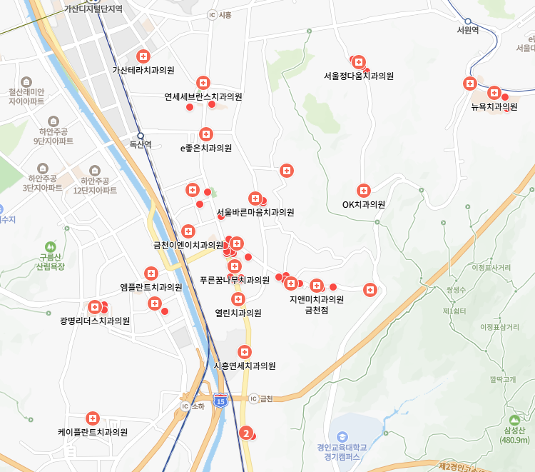 금천구 시흥동 치과 병원 일요일 충치 레진 보철 신경치료 교정 주소 전화번호 방문자 리뷰