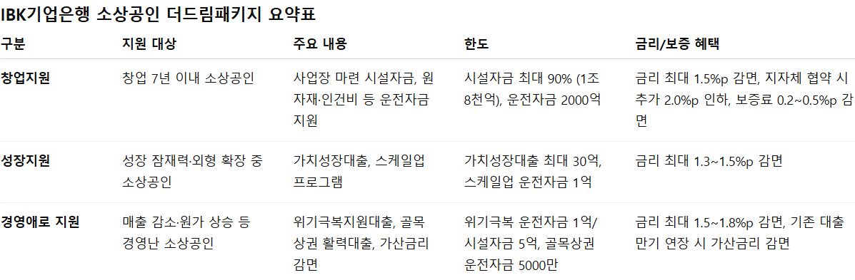 IBK기업은행의 소상공인 더드림 패키지는 창업부터 성장, 위기 극복까지 모든 단계에서 소상공인에게 필요한 금융지원을 제공하는 종합 프로그램입니다.