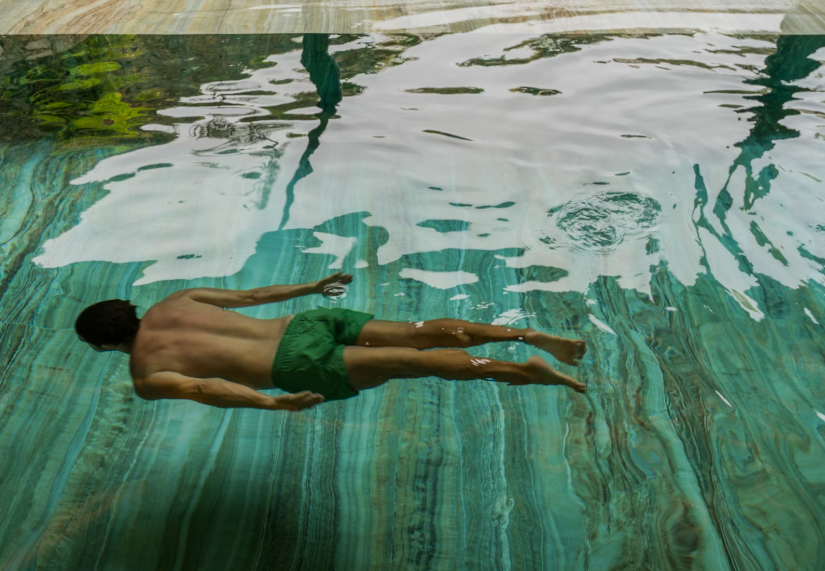 물의 진정 효과는 상당하며 물은 재생력과 깨끗함 및 투명함 등을 상징하게 됩니다. 또 이는 상징성에 그치지 않고 실질적으로 뇌에 긍정적인 영향을 미치게 됩니다. 우리 몸의 70%는 물로 이루어져 있으며 태아로 있을 때부터 양수에서 생활했을 정도로 물과의 친밀도는 상당히 높습니다. 사람의 잠재의식 속에는 물을 긍정적으로 평가하는 시각이 형성되어 있습니다. 물 가까이 있으면 적절한 공간에 와있다는 편안한 마음이 생기며 수영을 할 때도 명상을 하듯 마음을 치유하는 효과를 얻을 수 있을 수 있습니다.