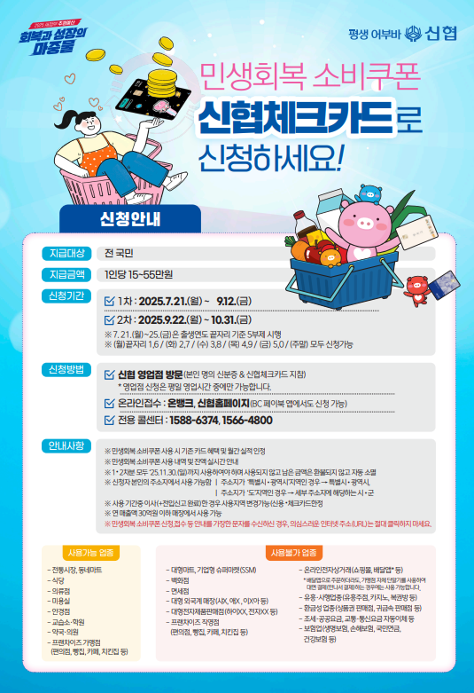 민생회복 소비쿠폰 신협 체크카드 신청 방법, 사용처, 신청 기간