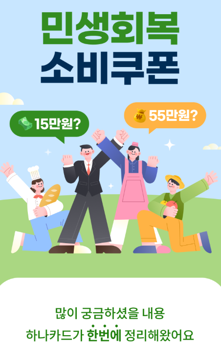 최근 장보러 마트만 가도 지출이 눈덩이처럼 늘어나는 걸 체감하신 분들 많을 겁니다. 이런 상황에서 정부가 전 국민을 대상으로 소비활성화를 위한 ‘민생회복 소비쿠폰’을 본격 지급합니다. 특히 하나은행 하나카드를 통해 체크카드 방식으로 신청 및 사용이 가능하다는 점에서 많은 분들이 관심을 갖고 있습니다. 아래 글에서 민생회복 소비쿠폰 하나은행 체크카드 신청 방법 혜택 홈페이지 내용 알아보겠습니다.