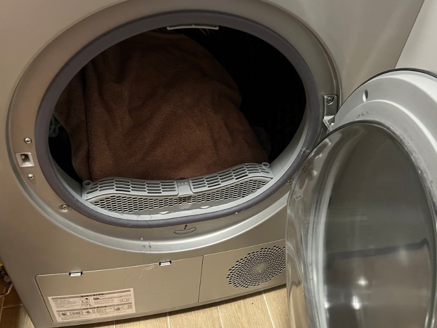 마른 수건을 돌돌 말아서 고정시키고 급하게 말려야 할 때는 수건을 한개가 아니라 여러개 함께 넣어주시면 수분의 흡수가 더 빨라지면서 건조기 가동 시간이 더 줄어들 수 있습니다. 수건을 여러 개를 넣을 수록 건조기 시간을 더 빨리 줄일 수 있습니다.