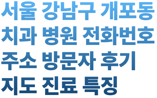 서울 강남구 개포동은 교통이 편리하고 주거 밀집 지역이기 때문에 다양한 치과 병원이 운영되고 있습니다. 치아에 이상이 있거나 정기 관리를 위해서는 꾸준히 치과 방문과 치아 관리가 중요합니다. 특히 치과 방문전에 미리 방문자 후기 그리고 블로그 리뷰 등을 보시고 알맞은 치과를 선택하시는 것도 좋은 방법입니다. 아래에 서울 강남구 개포동 치과 병원 전화번호 주소 방문자 후기 지도 진료 특징 알아보겠습니다.