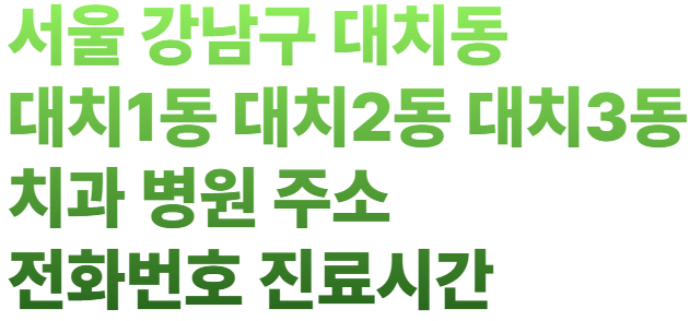 서울 강남구 대치동 대치1동 대치2동 대치3동 치과 주소 전화번호 진료 내용 등을 미리 알아보시고 치과 예약 방문하시면 상당히 편리합니다.