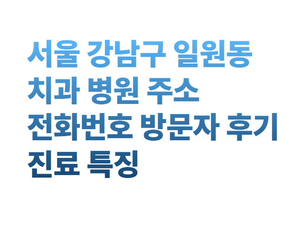 서울 강남구 일원동에는 임플란트, 보철, 교정 등 다양한 진료가 가능한 치과 병원들이 밀집해 있습니다. 따라서 지역 주민들이 편리하게 일원동 치과 병원을 잘 이용할 수 있습니다. 치과를 이용하시기 전에 먼저 네이버플이스 방문해보시면 방문자 후기 리뷰 지도 위치 등등 다양한 정보를 얻을 수 있습니다. 아래 글에서 서울 강남구 일원동 치과 병원 주소 전화번호 방문자 후기 진료 특징 내용 알아보겠습니다.