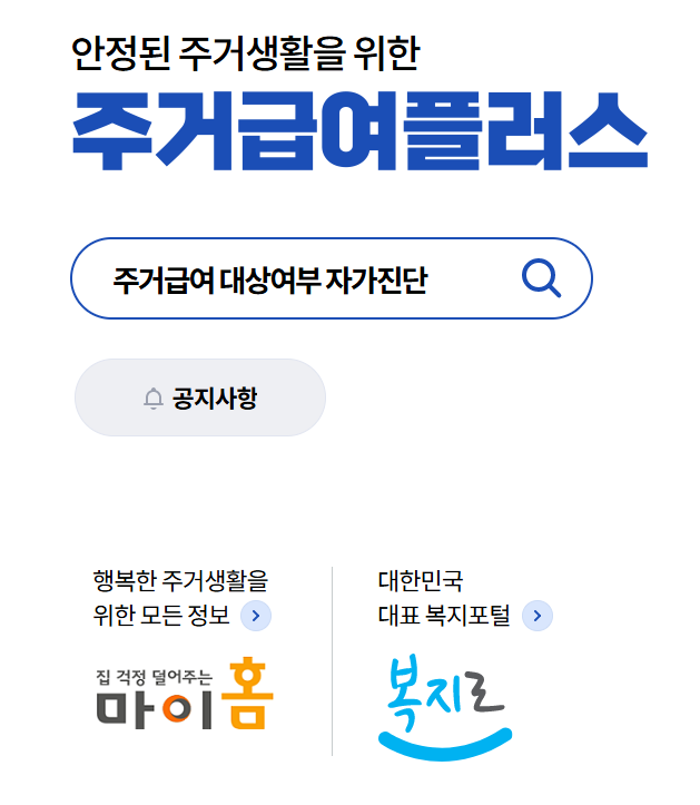 간단한 자가진단은 주거급여플러스 홈페이지를 통해 확인할 수 있으니 참고하시면 좋습니다.