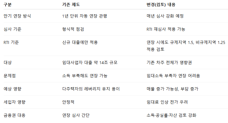 임대사업자 대출 연장 규제, 금융당국 주택임대사업자 RTI 재심사 대출 종류 연장 제한