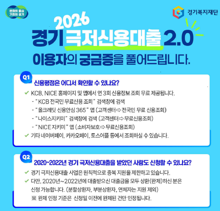 경기도에서 시행하는 경기 극저신용대출 2.0은 신용점수가 낮아 제도권 금융 이용이 어려운 도민들을 위한 대표적인 소액 대출 지원제도입니다. 생활비가 급하게 필요하지만 고금리 대출이나 불법 사금융으로 내몰리는 상황을 막기 위한 목적으로 운영되고 있으며, 금리와 상환 부담을 크게 낮춘 것이 특징입니다. 아래 글에서 경기 극저신용대출 2.0 신청 방법, 조건 입금 한도 금액 상환 기간 납부 상환 방법 알아보겠습니다. … 더 읽기
