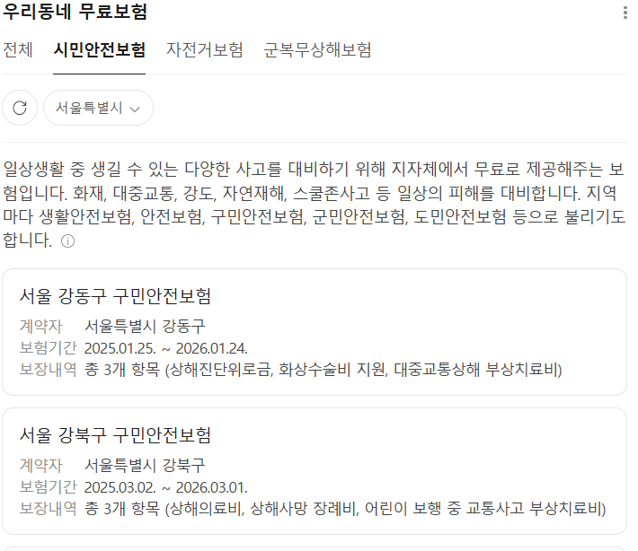 요즘 보험료 오르는 얘기만 들리는데, 의외로 보험료를 한 푼도 내지 않아도 보상받을 수 있는 제도가 있습니다. 바로 시민안전보험입니다. 주민등록만 되어 있으면 자동 가입되는 구조라서, 본인이 가입자인지조차 모르는 경우가 많습니다. 그런데 싱크홀 사고, 대중교통 상해, 자연재해, 스쿨존 사고처럼 일상에서 실제로 발생할 수 있는 안전사고가 보장 항목에 포함되는 지역이 많아졌습니다. 아래 글에서 시민안전보험 청구방법, 가입 대상자 확인 … 더 읽기