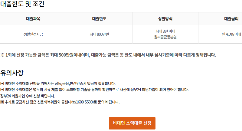 신용회복위원회 소액대출 신청 방법, 조건 한도 금액 서류 무직 대출 신청 방법