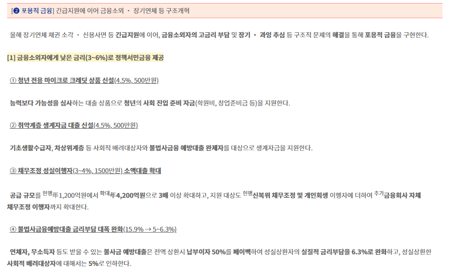 금융당국이 청년과 취약계층을 대상으로 한 새로운 정책대출을 2026년부터 본격적으로 선보일 예정입니다. 불법사금융을 줄이고 제도권 금융으로의 진입을 돕기 위한 취지로, 금리는 낮추고 한도는 늘린 것이 핵심입니다. 단기 지원에 그치지 않고, 이후 은행권 대출로 자연스럽게 넘어갈 수 있도록 구조를 설계했다는 점에서 기존 정책대출과는 방향이 다릅니다. 아래 글에서 청년·취약계층 대출 신청 방법, 중 저신용자 2026년 4.5% 정책대출 한도·금리 … 더 읽기
