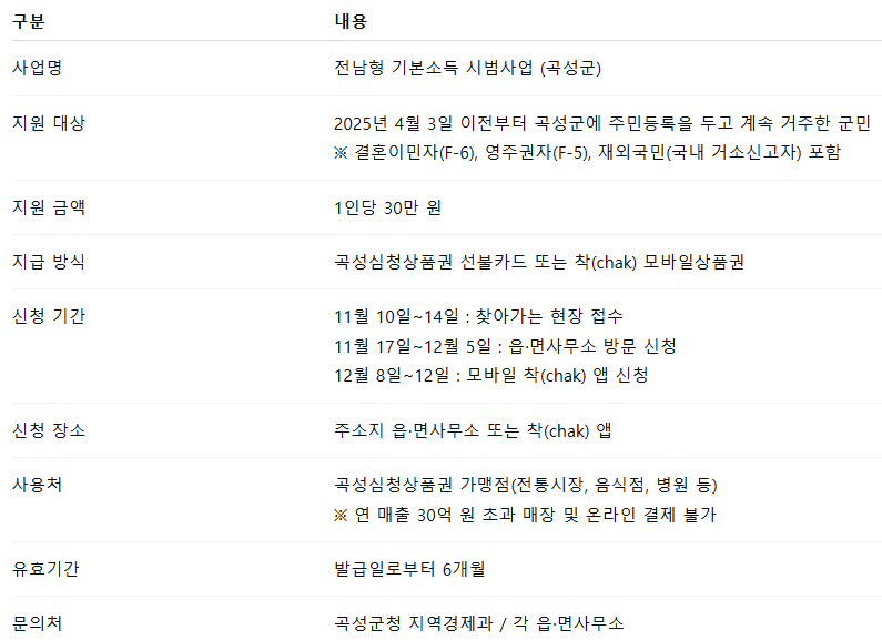 전남형 기본소득 시범사업, 곡성군 기본소득 지원금 30만원 신청 방법 신청 기간