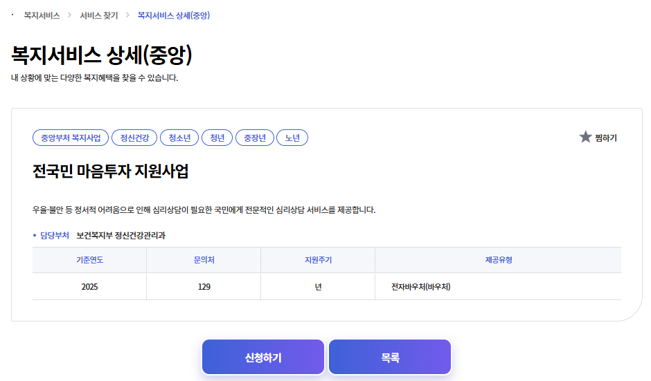 전국민 마음투자 지원사업 바우처 신청방법 정신건강 상담 지원 안내
