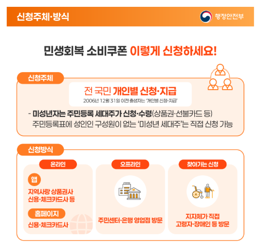 민생회복 소비쿠폰 신청 방법 21일 월요일 출생연도 끝자리 1·6 신청 시작
